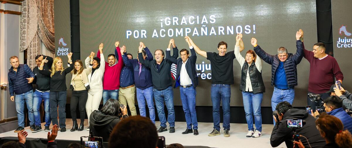 El centro de cómputos de la alianza oficialista informaba en ese momento de la noche que las actas de escrutinio parcial permitían “proyectar una victoria contundente de Jujuy Crece con un 40%, sobre un 20% de La Libertad Avanza”.
